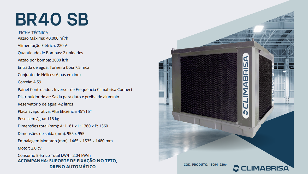 Benefícios do Climatizador Evaporativo Climabrisa Teto BR40 SB: